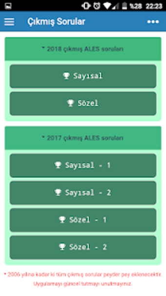 ALES Çıkmış Sorular werkt op Android 9.0 en hoger. De huidige versie van het programma is 0.8 en je kunt het alleen in het Turks uitvoeren.